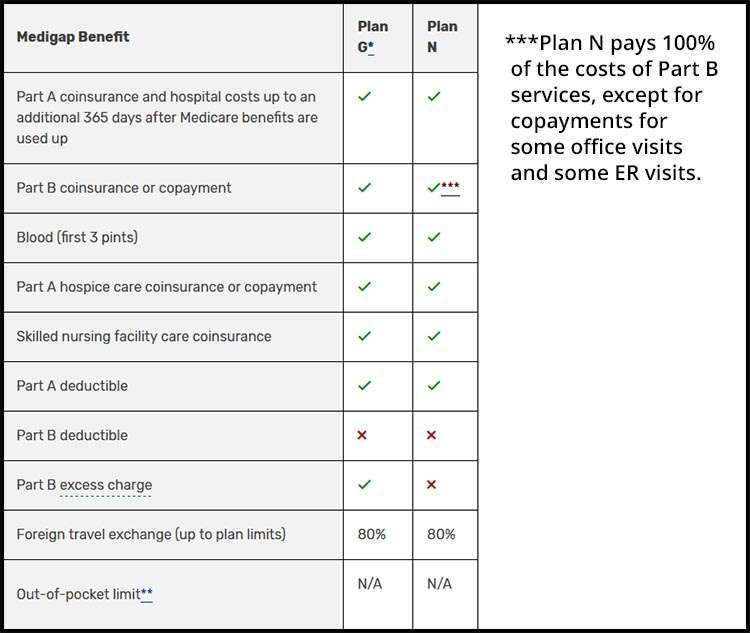 Since Plan C and F are no longer being sold to anyone turning 65 after January 1, 2020, so let’s look at the two most popular and why: Plan G and Plan N.