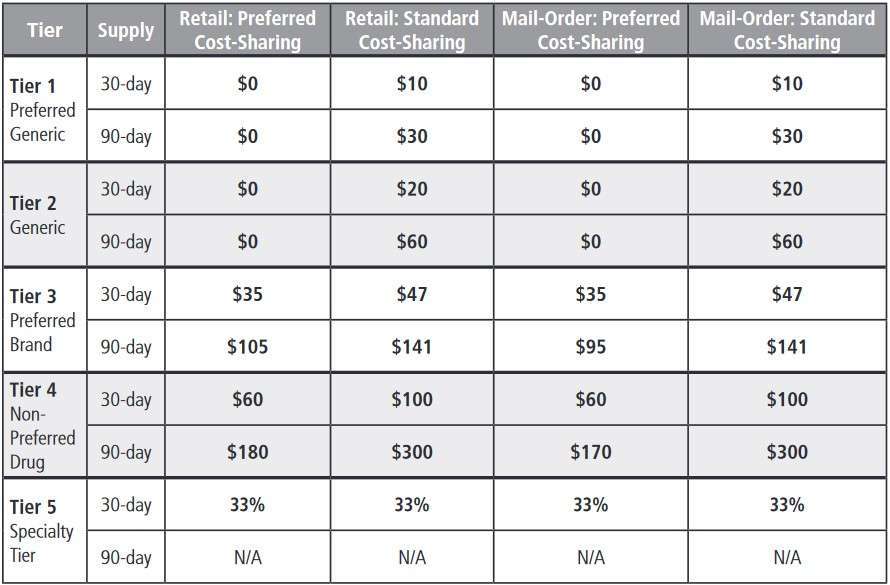 Tiers three through five vary widely based on the plan. They could range from $35 to $55 (on average) for tier three, $95 to $120 on tier four, and a coinsurance of 25% to 33% for tier five. What does this all mean? Let’s break it down.