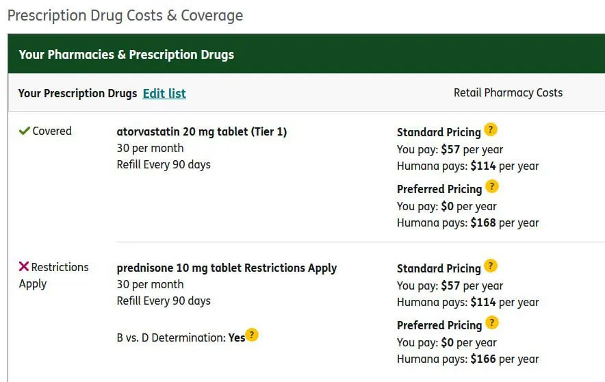 Once you have inputted or imported all your prescriptions, it will look at the formulary of the plan and give you an annual cost. This will be based on several factors: